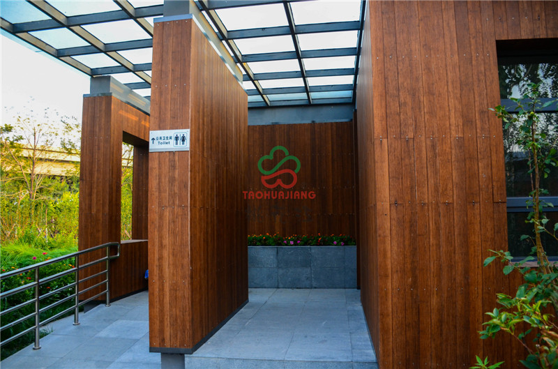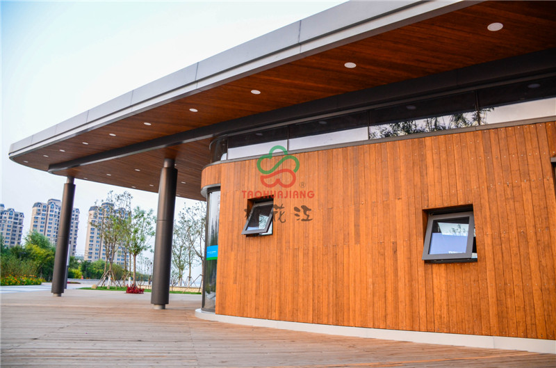 該公園東側為海濱高速公路,西側為濱海旅游區(qū)辦公區(qū)域,北臨海博路,南至規(guī)劃海旭道,是從城市空間到海邊的過渡型景觀。項目的建設是在尊重歷史和現(xiàn)實條件基礎上,結合先進的生態(tài)建設理念,大面積運用了桃花江竹材科技的環(huán)保竹材作為主體裝飾材料,公園內(nèi)的主體建筑,采用桃花江竹材科技的全竹裝飾來裝潢,高炭防腐竹材做外墻和吊頂裝飾,色澤明亮,渾然一體,既現(xiàn)代又傳統(tǒng)的竹材裝飾風格為公園營造自然、郊野景觀氛圍,為市民提供一個全新的休閑娛樂場所。
